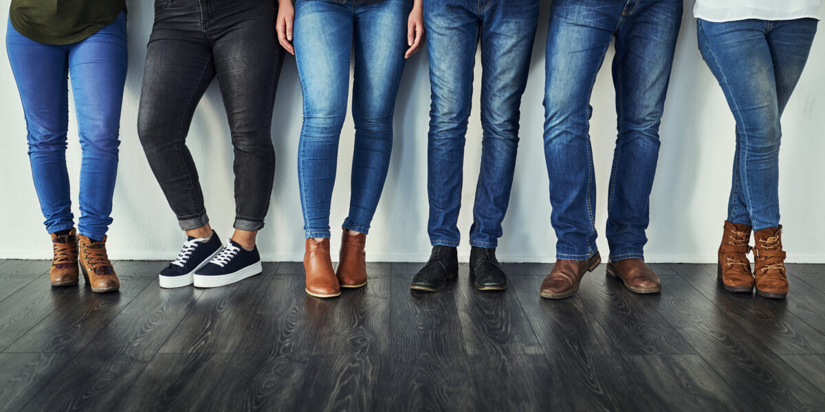 تحظى السراويل الضيقة باللونين الأزرق الداكن والأبيض بشعبية كبيرة للسيدات، في حين يمكن للرجال العثور على قصات مستقيمة وملائمة بجميع درجات اللون الأزرق.