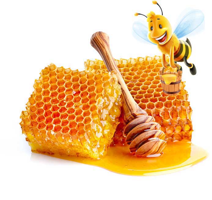 1- غذاء طبیعي: وهو العسل المستخرج من شمعها ویتم تخزین جزء منه وإعطاؤه للنحل وقت الشتاء.