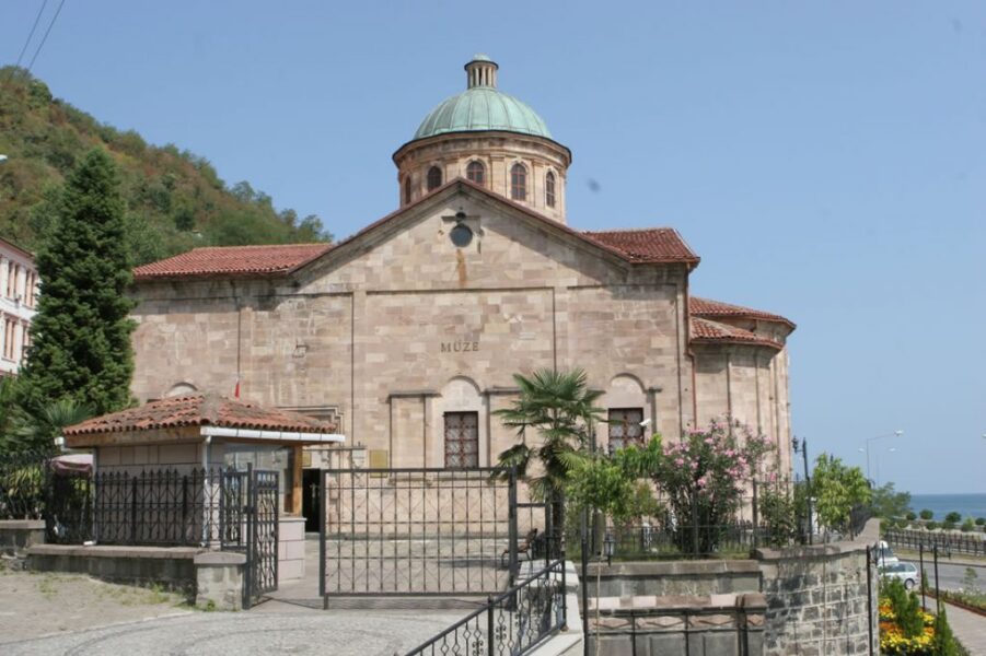 يوجد في المتحف العديد من الآثار القديمة التي تعود إلى العصر البرونزي القديم، والعصر الإغريقي، والروماني، إلى جانب العصر السلجوقي، والعثماني، ومن تلك الآثار المهمة: الكاتدرائية اليونانية التي تأسست في القرن الثامن عشر ميلادي، وشكل مبنى المُتحف مُربع من الخارج، ومستطيلٌ من الداخل، وتتوسطه قبة، فيما تسنده أربعة أعمدة دائرية الشكل، وأربعة أعمدة أُخرى مُضلعة. استُخرجت الحجارة التي بُني بواسطتها المتحف من مناجم المدينة، ويؤدي إلى المتحف بابٌ رئيسيٌ في الناحية الغربية، كما يتوفر للمتحف بابان فرعيان في الناحية الشمالية والجنوبية.